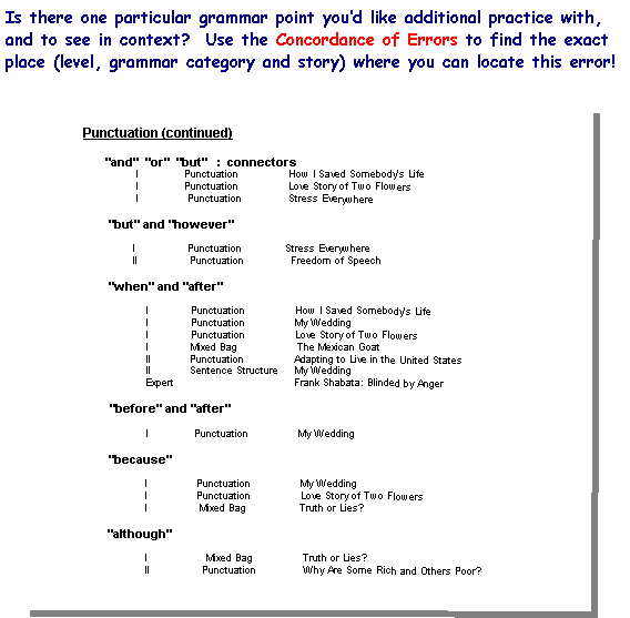 component, in which a user or teacher can link directly to grammar pages